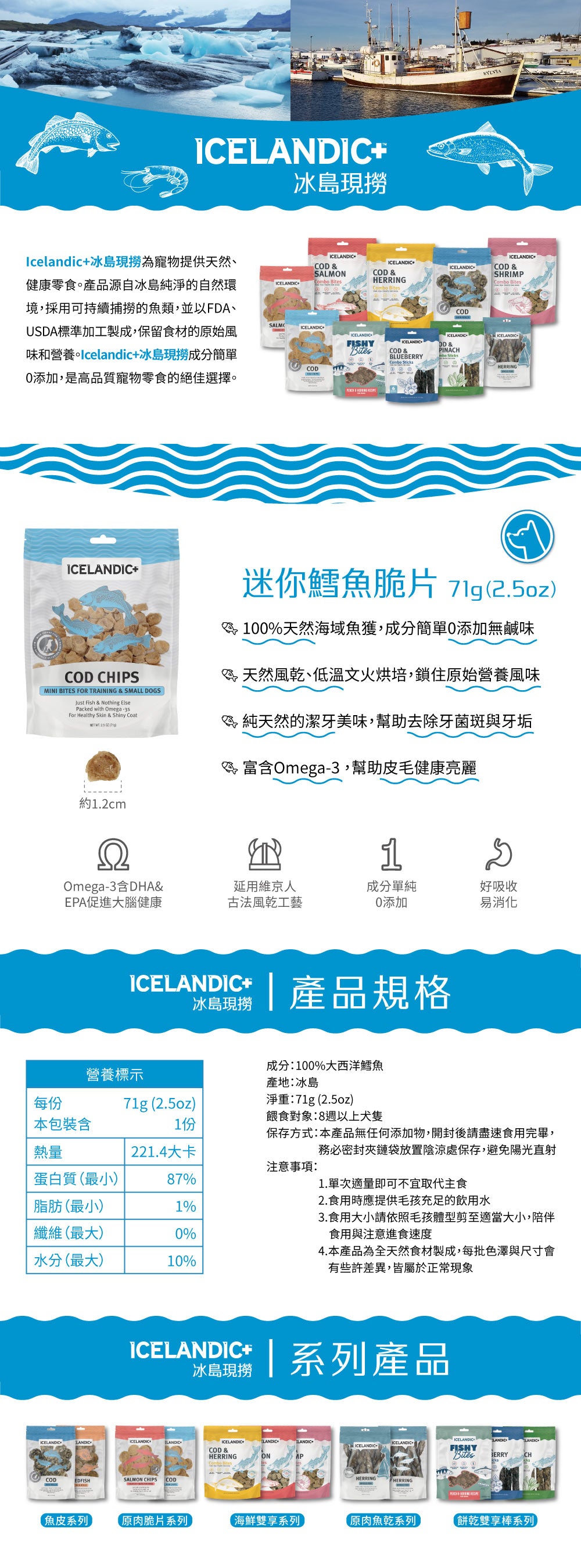 100%天然海域魚獲,成分簡單0添加無鹹味 天然風乾、低溫文火烘培,鎖住原始營養風味 純天然的潔牙美味,幫助去除牙菌斑與牙垢 富含Omega-3,幫助皮毛健康亮麗