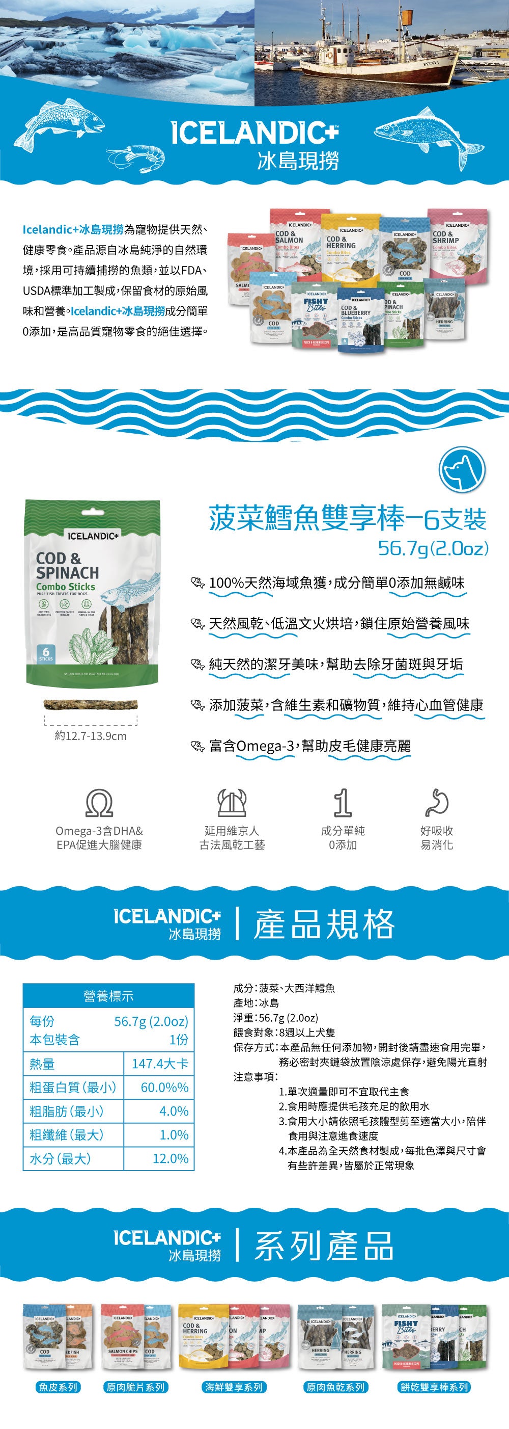 Icelandic+ 冰島現撈 菠菜鱈魚雙享棒 六支